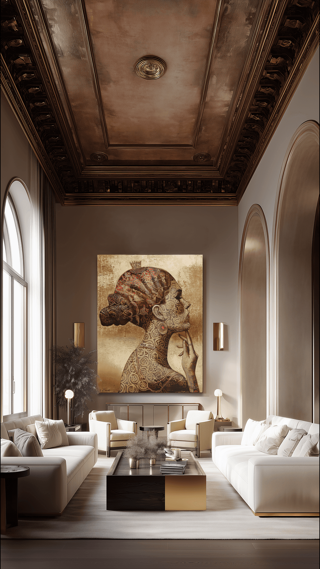 Arūnas Rutkus’ “Golden Period” is a breathtaking celebration of transcendence, where radiant golden hues, intricate textures, and ethereal human forms converge to evoke themes of enlightenment, spirituality, and transformation. These works delve into the interplay of the eternal and the ephemeral, with each brushstroke illuminating the beauty of existence and the complexity of emotion. The human figure, adorned with ornate patterns and flowing details, becomes a timeless symbol of introspection and universal truth. Rooted in a dreamlike atmosphere, this period reflects Rutkus’ mastery in blending texture, light, and symbolism into a cohesive visual language. The “Golden Period” stands as a luminous meditation on life’s harmony and resilience, inviting viewers into a profound exploration of the sublime and the divine.
